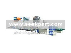 GF series plastic pipe production line mainly produces PVC pipes of various calibrators and thickness for agricultural water supply and drainage, building supply and drainage, cable laying, etc. This machine unit consists of cone twin-screw extruder, vacuum shaping platform, tractor, cutter, drainage pipe, core foaming pipe, muffling drainage pipe (hollow spiral pipe, solid wall spiral pipe), multi-pore pipe for communications, mixing rack, etc. The single-screw extruder and tractor are assorted with the imported AC variable frequency speed regulation device; and the vacuum pump and traction motor are both high-quality products. The modes of traction are 2 claws, 3 claws, 4 claws, 6 claws, etc. After matching with special devices, muffling drainage pipes and core foaming pipes can be produced.